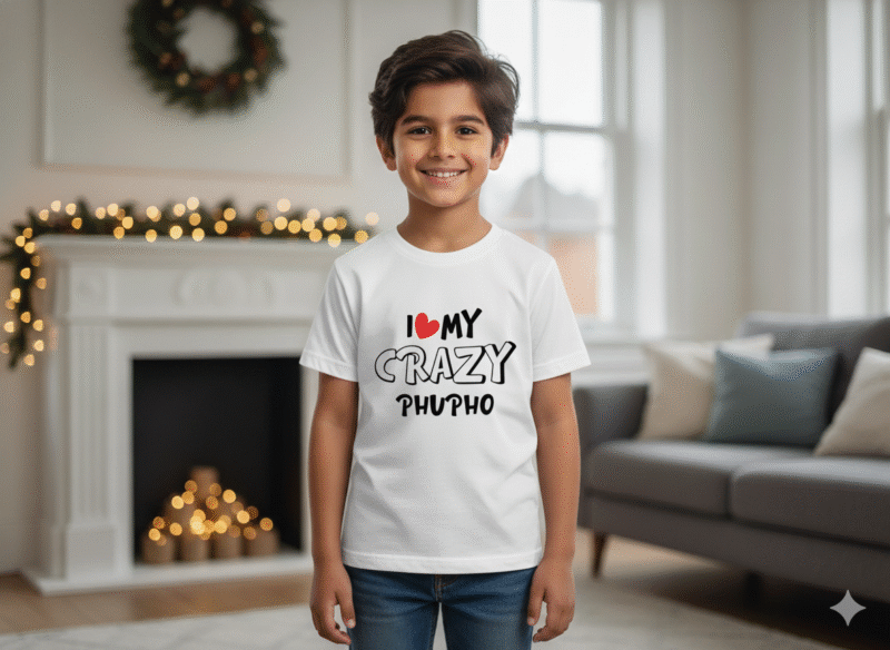 Let your child proudly declare their affection for their fun-loving paternal aunt with this adorable “I ❤️ My Crazy Phupho” T-shirt! This playful tee is a perfect way to celebrate the unique and special bond with a “Phupho” (aunt, specifically father’s sister).