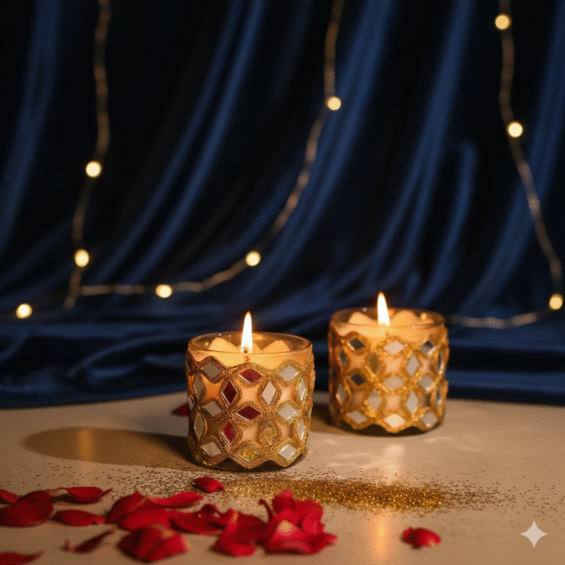 ‘Noor’ Diamond Mirror-Adorned Candles (Set of 2)
